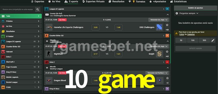 O 10 game oferece uma grande seleção de opções de apostas em e-sports com probabilidades competitivas